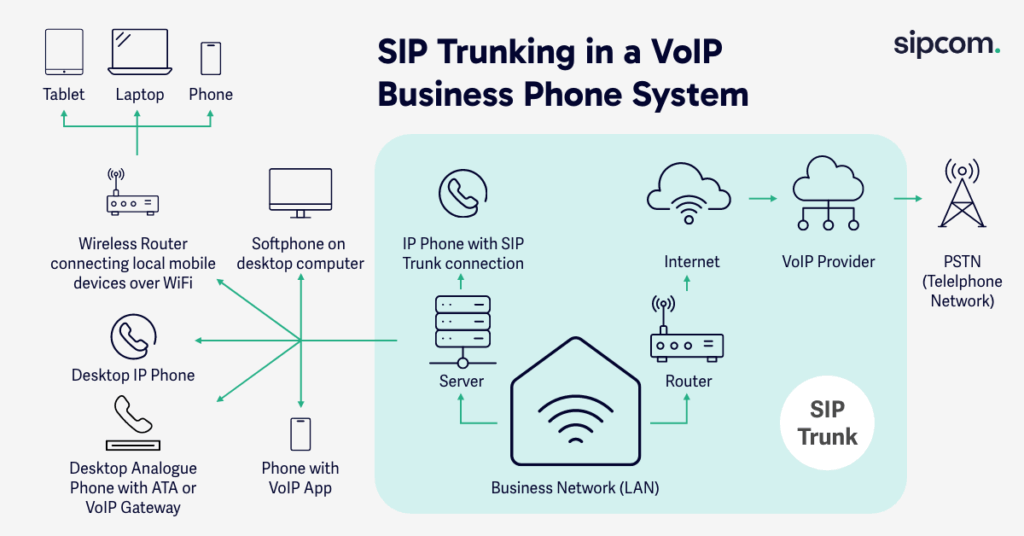 SIP trunking stops businesses from being tied down by traditional phone lines. It connects their Private Branch Exchange (PBX), which handles traditional telephony, to a SIP provider.